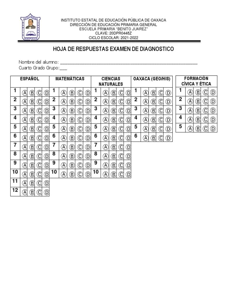 Respuestas De Matematicas Cuarto Grado : Hoja De Respuestas Modificada 2 Pdf